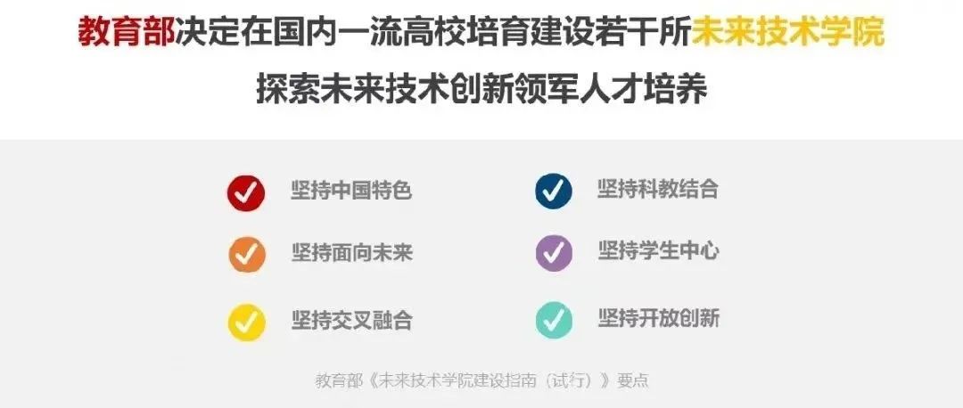 教育部通知要求首批未来技术学院建设高校明确建设目标,开展多元探索,加强质量保障,着力培养具有前瞻性、能够引领未来发展的技术创新领军人才,推动从“中国制造”到“中国创造”的转型升级,为建设高等教育强国、服务高质量发展、实现中华民族的伟大复兴奠定基础。