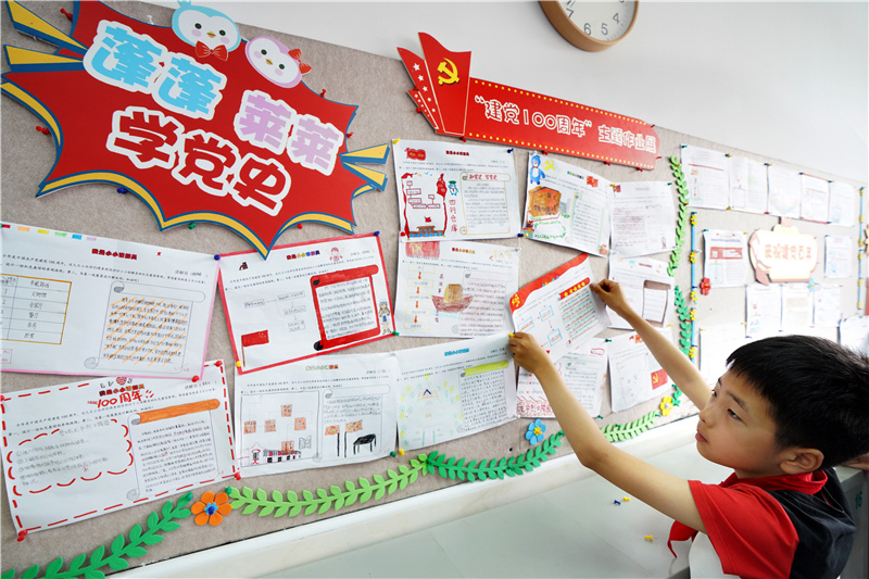 “党旗下的中国向前走之诗歌赏析”“知党史,学数学,闯三关”“党旗大小我来量”“The Sound of China中国之声”……围绕庆祝建党100周年的主题,该校语文、数学、英语、自然、美术学科的老师们“各显神通”,结合学科特点与本年段教学目标,不拘一格地设计出了融探究性、实践性和趣味性于一体的绿色作业,受到了孩子们的喜爱与追捧。