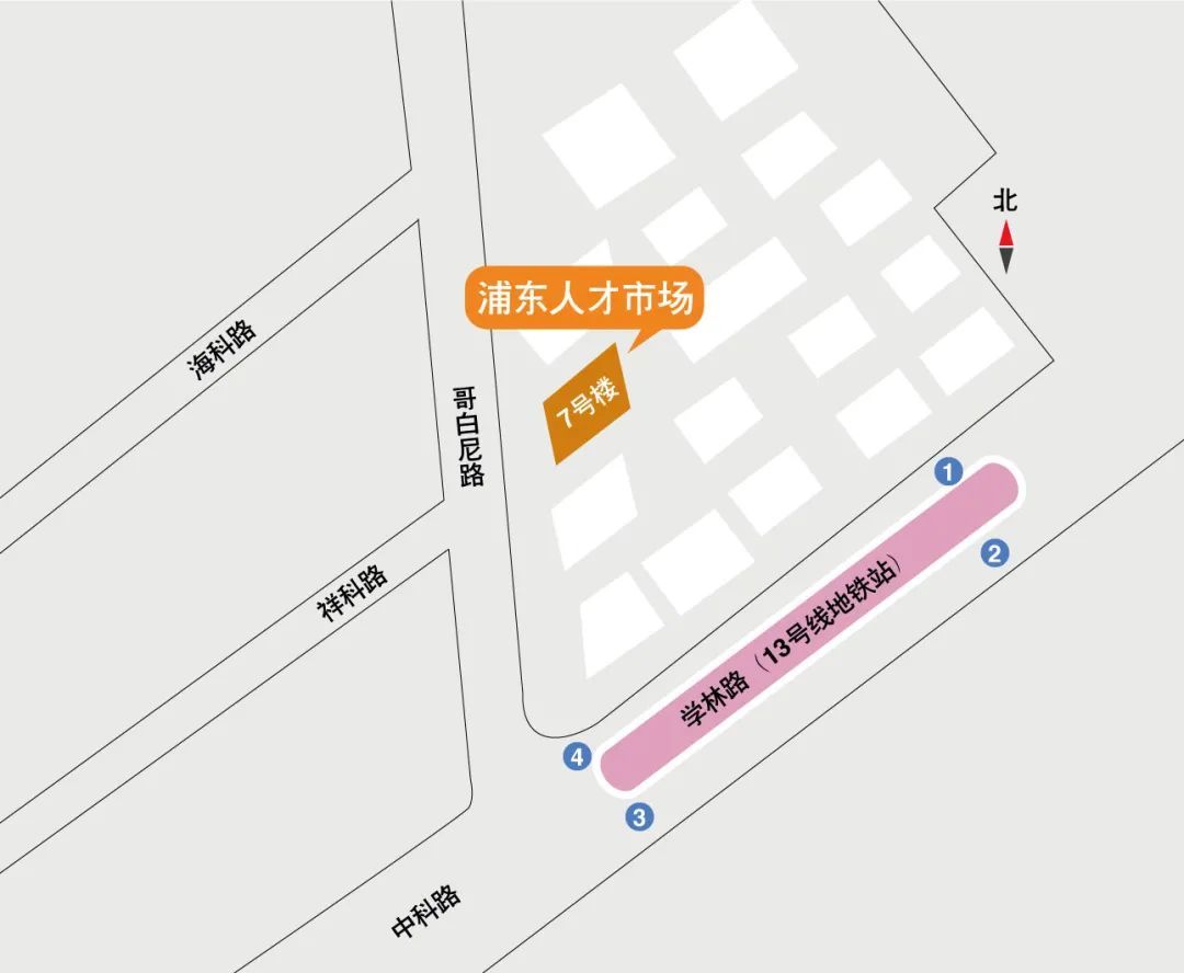 地铁13号线学林路站1号口出(左转进到浦东新区人才市场)
