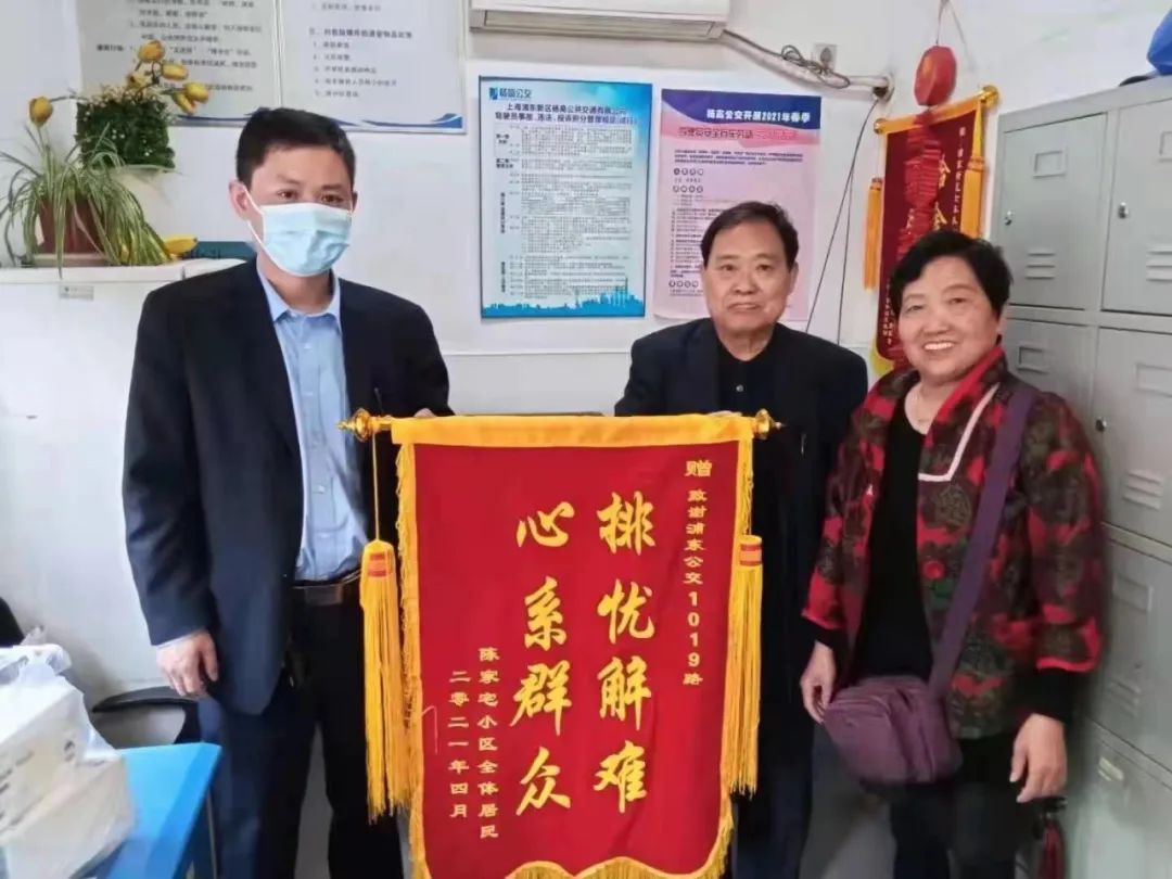 “谢谢,谢谢,感谢你们公司肯倾听群众的心声,细心安排,为我们这些周边的居民排忧解难”……说话的正是两位家住潍坊新村街道陈家宅小区的居民代表。塘桥新路公交枢纽站启用首日,他们特地手握锦旗,对公司调整1019路时耐心听取居民意见、兼顾新老乘客需求、多次重新规划线路走向表示感谢。