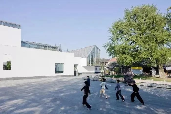 可•美术馆位于朱家角和练塘两个江南古镇之间,四周是原生态的农田,远远望去,简洁、朴素、优雅的粉墙黛瓦完美地融入乡间田陌的大背景之中,清秀、古朴、又有现代气息。