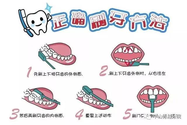 刷牙时张大嘴,看到上排右边最后一颗牙。由右后方颊侧开始,刷到左边,然后左边咬合面、左边舌侧再回到右边舌侧,然后右边咬合面。如此循序的刷便不会有遗漏。刷牙的顺序口诀:右边开始,右边结束。