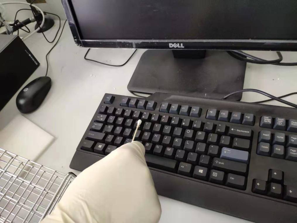 上海市疾控中心的小伙伴选了10个日常使用的电脑键盘,用浸有无菌生理盐水的棉拭子涂抹键盘表面的方法进行采样。