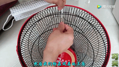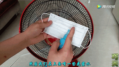 然后将一次性口罩系在电扇上,不但能净化家里的空气,驱蚊效果也非常好。