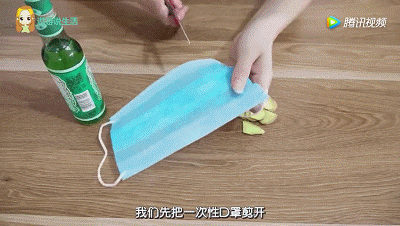 取一个干净的一次性口罩,将口罩的一头剪开,取出口罩内的小铁丝。
