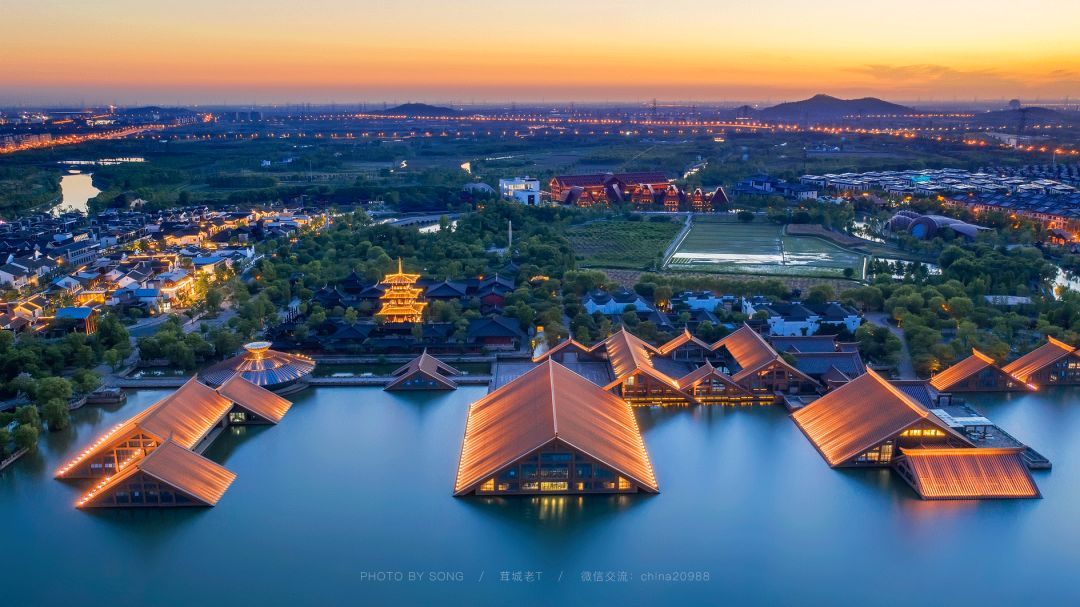 其中,广富林文化展示馆位于漂浮在富林湖中的其中一个大屋顶和边侧的圆形建筑内,整个展览空间均设置在水下,展厅设计以“时空之旅”为理念,通过广富林考古记忆、上海成陆演变、先民活动到来、城邑特征形成、松江县府兴盛、上海城市崛起、走向未来明天等场景设计,让游客在时光隧道中阅读城市变迁。