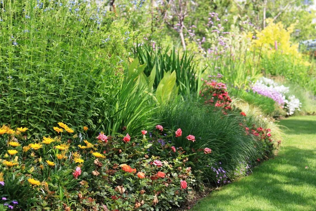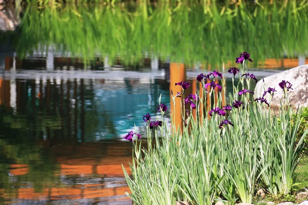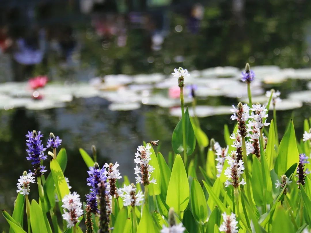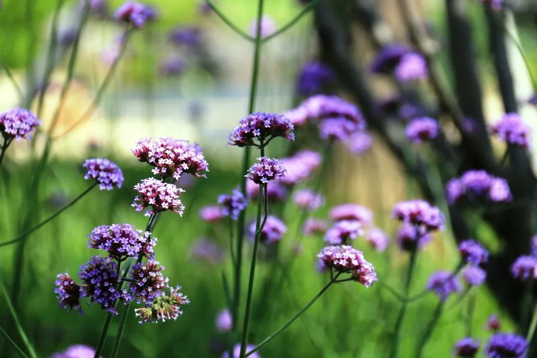 池边的草坪上点缀着柳叶马鞭草,蓝紫色精致的穗状花序为闷热的夏日午后带来了一丝清凉。