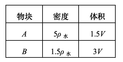 ③若水的体积为3V,深度为3h。现有两个柱形物体A、B,其密度、体积的关系如下表所示。请选择其中一个,将其竖直放入容器甲中(物体均能浸没在水中),使水对容器甲底部的压强增加量Δp最大。请写出选择的物体并说明理由,求出Δp最大。(用字母表示)
