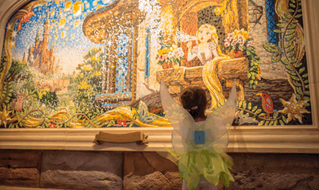 乐园入口是一座钟楼,大家兴冲冲到达的第一个拍照打卡地。但很少有人会发现塔顶有个奇妙仙子风向标,原来奇妙仙子就是在这儿,为大家第一时间撒上仙尘,神奇的一天就此开启!