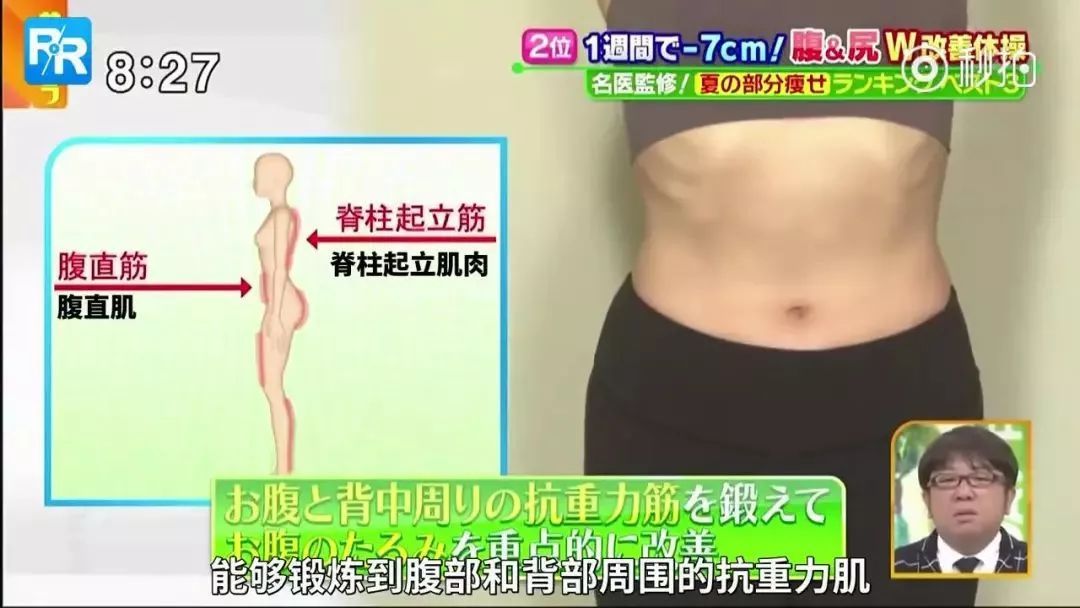 运动到肚子和背后的肌肉,可以帮助我们减掉小肚子,美化背部线条。坚持锻炼,就能看到自己身体发生让人惊喜的变化哦~