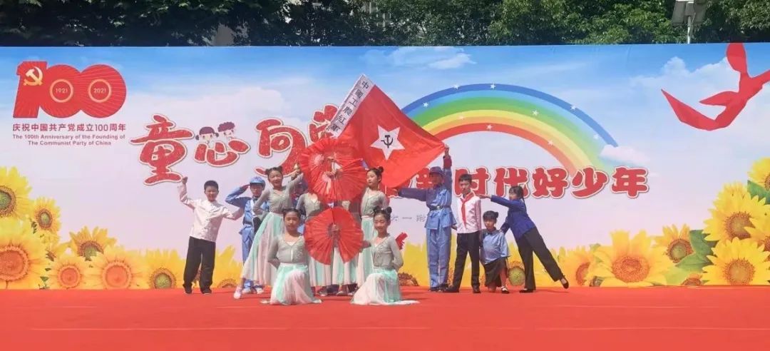在收到“六一”特别礼物的同时,全校师生也为党的百岁华诞送上深深的祝福,在学校幸福广场进行“千人拼党旗”活动,当最后一块拼版完成时,欢呼声响彻校园,洋溢着满满的幸福与自豪。