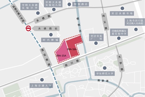 位于剑川路以北,尚义路以西,规划为商业商办和文化用地,占地约30亩,紧邻轨道交通15号线的永德路站800米,与华东师大一路之隔。