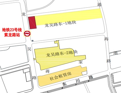 09A-19A地块位于龙吴路以东,东川路以北,占地约71.1亩,规划容积率2.5,将建设1778套社会租赁房,地块距离23号线紫龙路站最近不到100米,最远不超过500米。