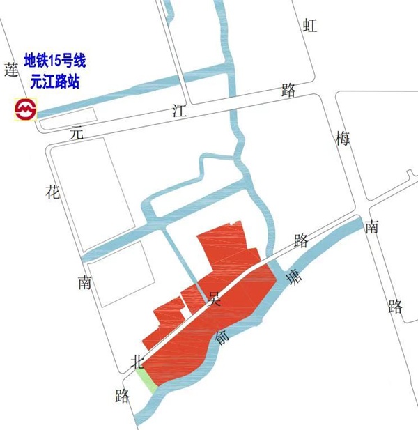 位于莲花南路以西,北吴路以南,约50亩研发用地,地块南、西两面俞塘河环绕,地理位置优异,向北到15号线元江路站和向南到15号线永德路站均在1.2公里左右。
