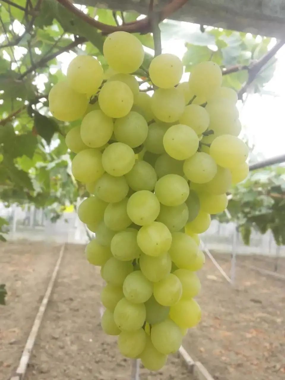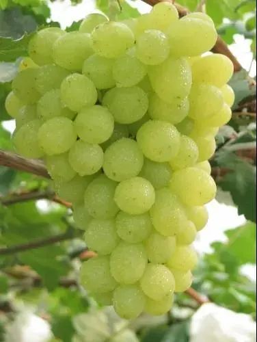 欧亚种,中国农科院植物研究所育成。果穗圆锥形,平均穗重373.7克,果粒着生紧密,果穗大小整齐。黄绿色,平均粒重7克。果肉脆,肉质细腻,味甜,具玫瑰香味。上海促成栽培6月下旬成熟。