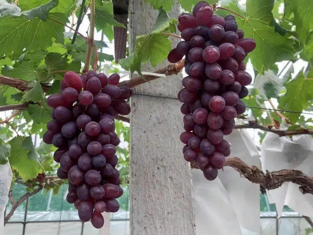 目前成熟的品种有“早夏黑”“寒香蜜”“黑巴拉多”“申爱”等多个品种,其中“申爱”作为上海农科院研究的新品种,果形较小,糖度却能达到20度左右。7月中旬过后,巨峰、阳光玫瑰等中熟葡萄将开始上市。