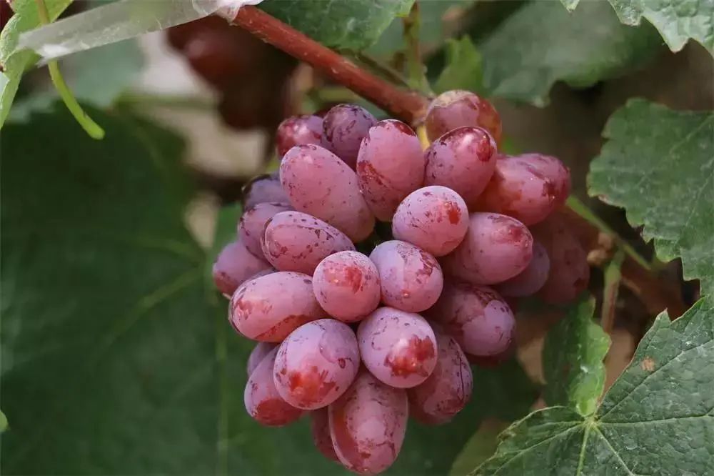欧亚种,北京市林业果树科学研究院选育。果粒长椭圆形或卵圆形。果皮紫红或红紫色。平均单穗重400克,平均单粒重5-6克。果肉质地较脆、硬,酸甜多汁,玫瑰香味较浓。瑞都红玉今年受到“倒春寒”的影响,产量较少。