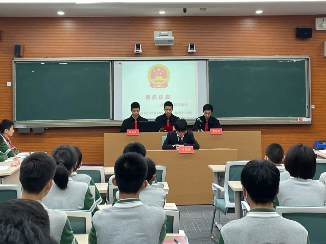随着法槌的敲响,一场“别样”的庭审拉开了帷幕。“小审判员”穿着法袍主持法庭调查、法庭辩论、当事人最后陈述、宣判等环节。整个过程秩序井然,各角色扮演严肃认真,旁听人员神情肃穆,模拟法庭活动取得圆满成功。