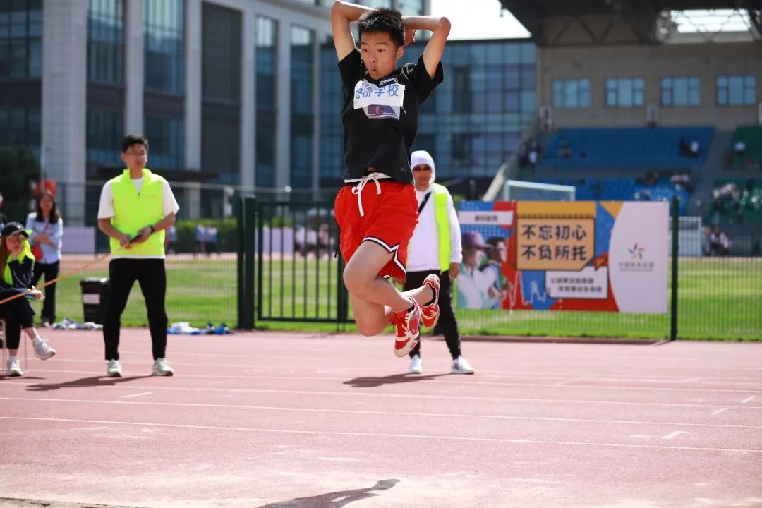 此时的松江体育中心田径场已经人声鼎沸,全区82所学校的运动员早早的来到场地,积极准备着参加松江区中小学生校园运动会各个项目的比试。