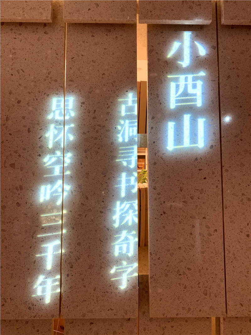 读者走进门,会看到一个白色的山,这是白色人造石制作的书架。光线从石壁里面透出来,这时她又像一个灯山,它就是二酉书店的小酉山。看得见的小酉山是二酉书店的新书精品书推荐区。