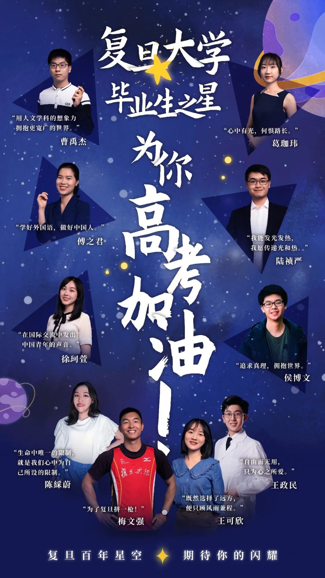 即将迎来高考的莘莘学子们,今天,复旦大学“毕业生之星”一起为你高考加油!现在,一起来认识一下他们吧!