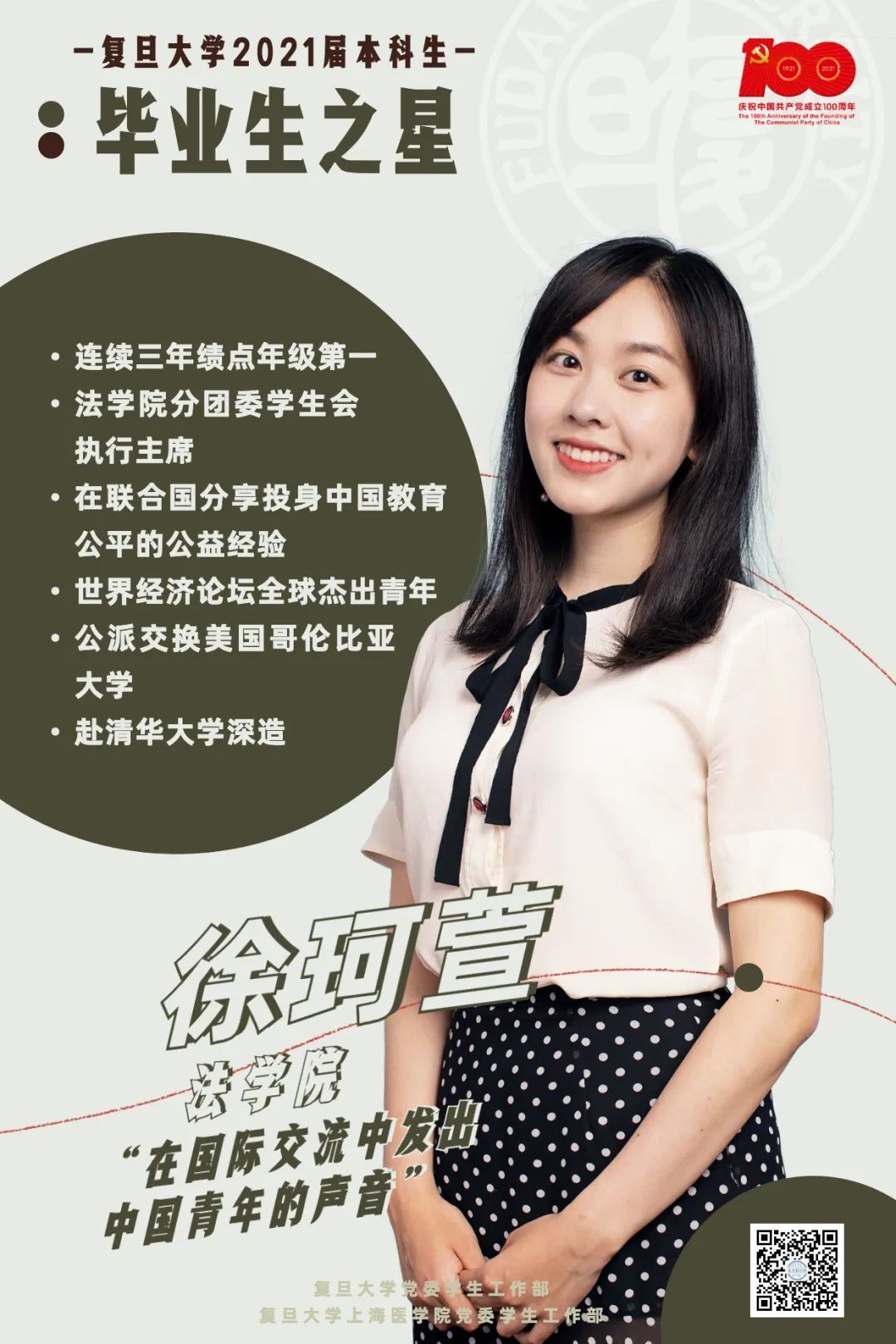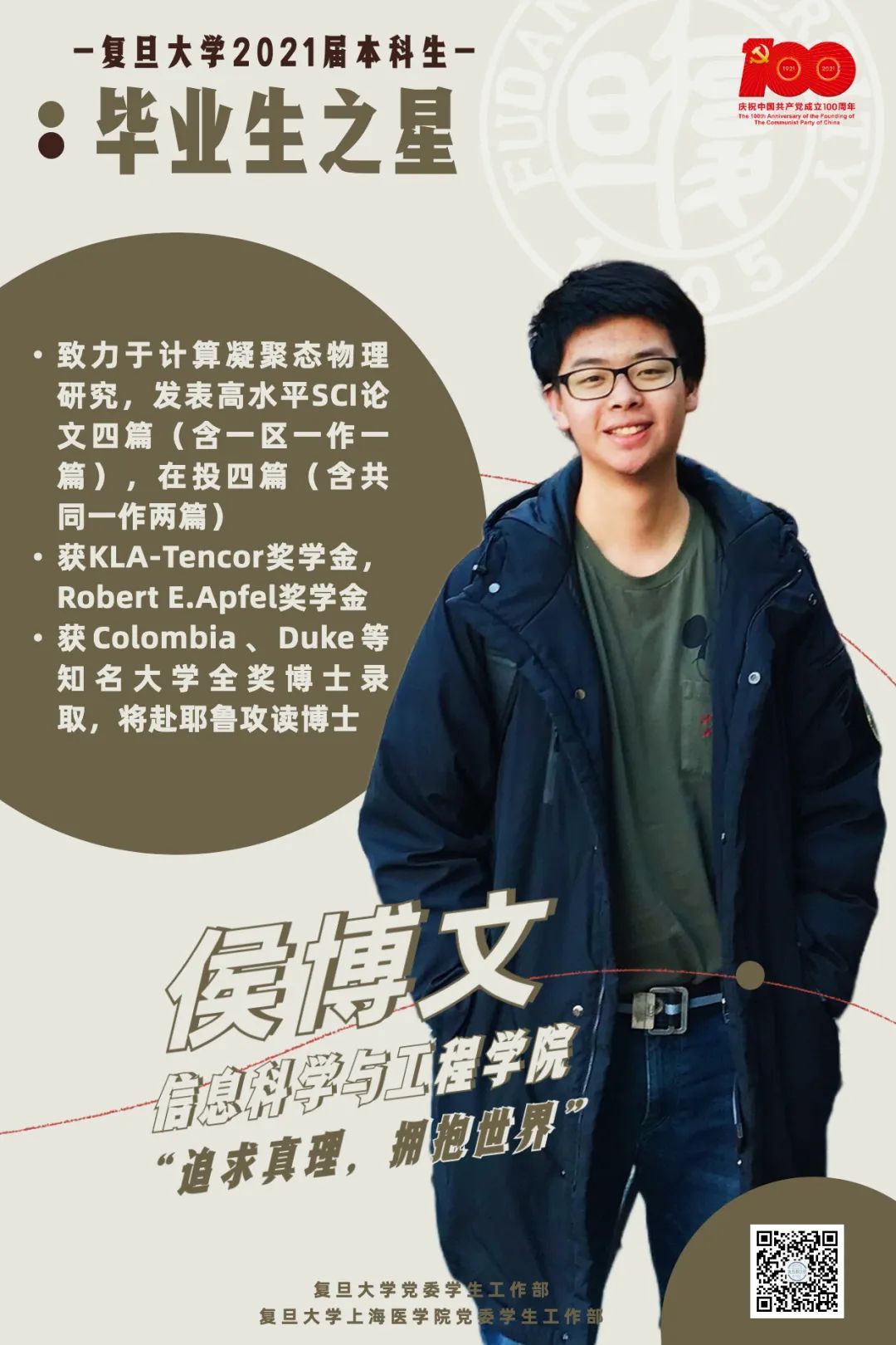 5月中旬,经过现场答辩展评,并经过公示,最终10名复旦大学2021届“毕业生之星”和14名“毕业生之星”提名奖名单正式出炉。