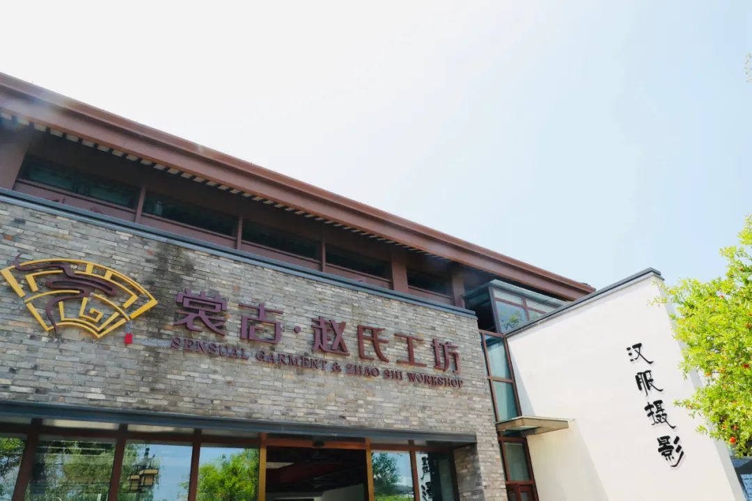 红墙砖瓦、雕梁画栋,位于广富林文化遗址西片区的三清广场有着“小故宫”之称,是一处网红拍照打卡地。距离广场不远,坐落着一家名叫“裳古·赵氏工坊”的古风文创品牌店。自去年入驻以来,裳古·赵氏工坊致力于汉服前端推介、开发设计、拍摄展示、宣传推广等。