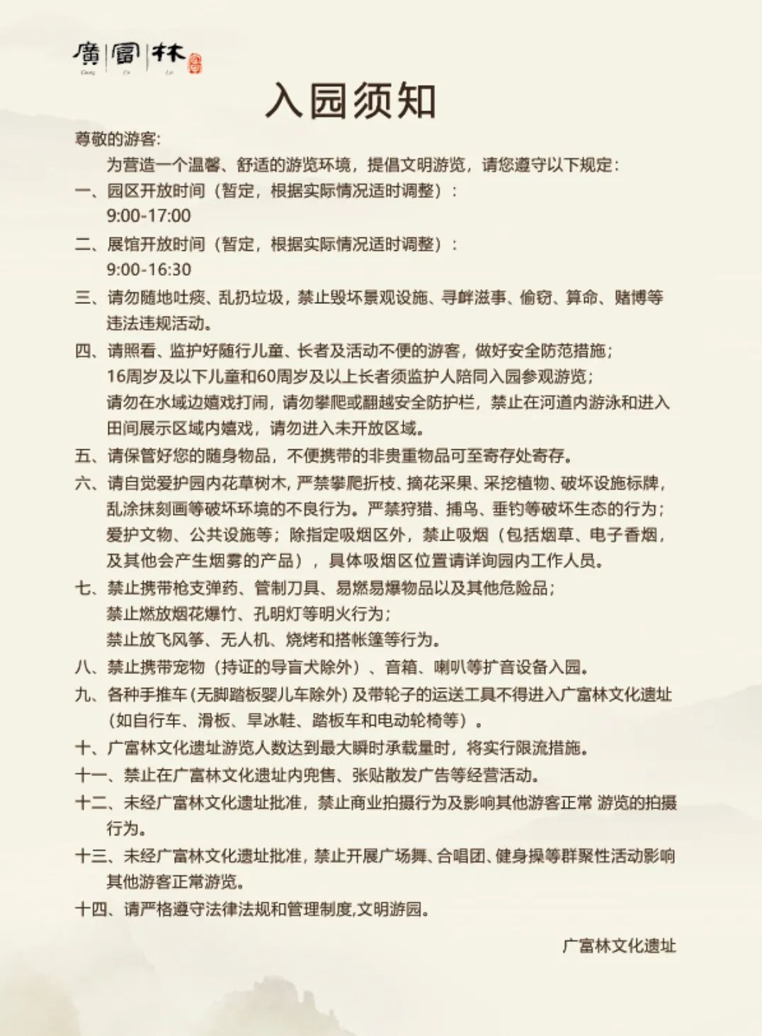 公共区域免费对外开放时间:9:00-17:00