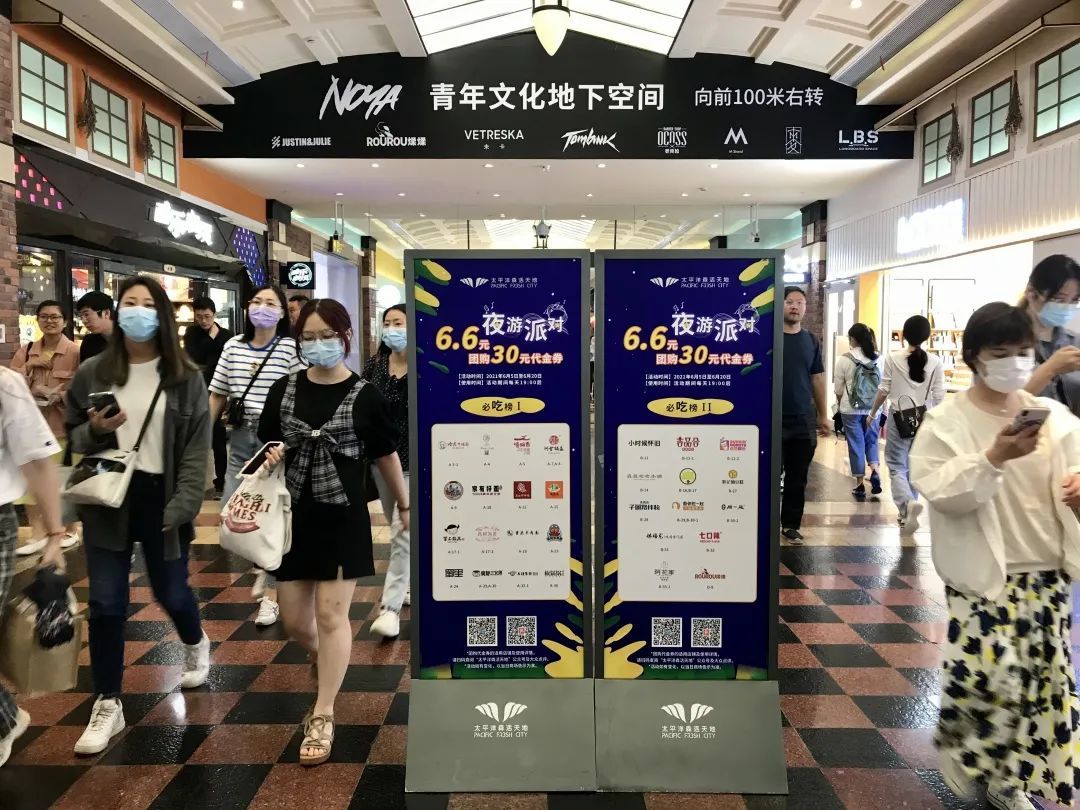 活动期间,于太平洋森活天地9-10号口餐饮品牌单笔消费满38元,即可至服务台兑换38元星空夜食券。