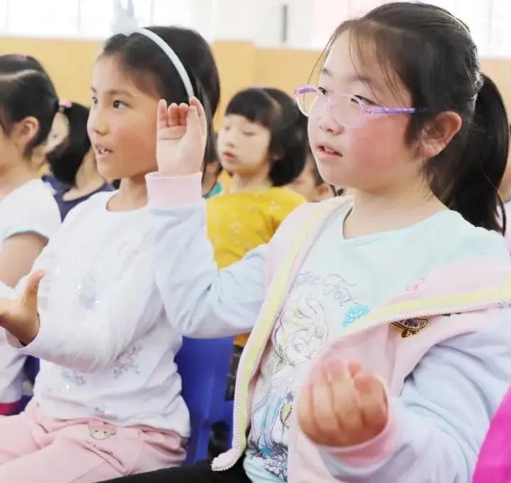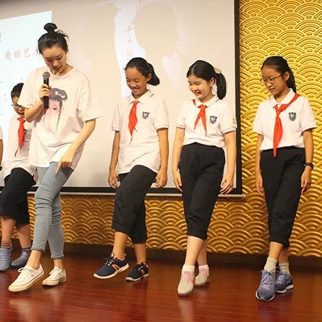 课上,上海如意越剧团嵇志颖、笪雪莹老师用生动的语言和一个个通俗易懂的小故事,讲述了越剧的诞生、“绍兴文戏”,以及越剧的改革等,给同学们普及了越剧的发展历史、流派以及角色行当,让学生对越剧有了基本的了解。同时,她们也教会学生们一些简单的越剧技巧,让他们参与到越剧表演当中,感受到越剧的艺术魅力。