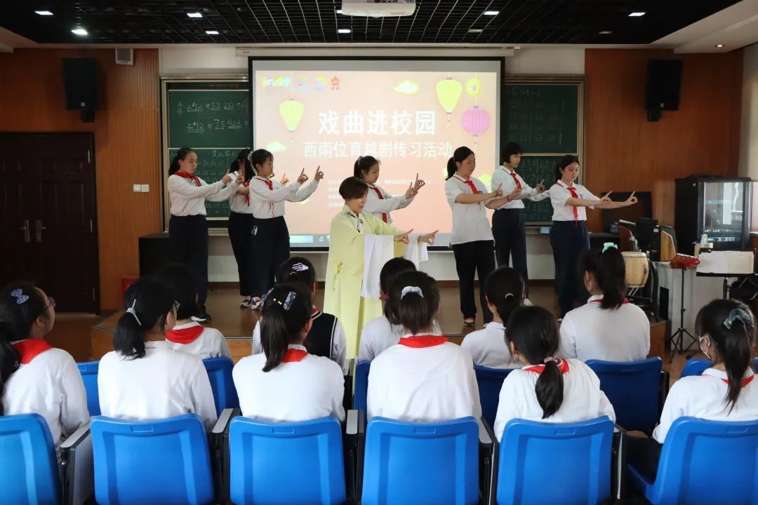 2018年9月,枫林街道牵头把越剧艺术带到了西南位育中学,越剧院的优秀青年演员每周来到学校为越剧兴趣班的同学授课,如今已经培育孵化了三个年头,同学们表演的越歌《玉兰颂》已经像模像样,架势十足。