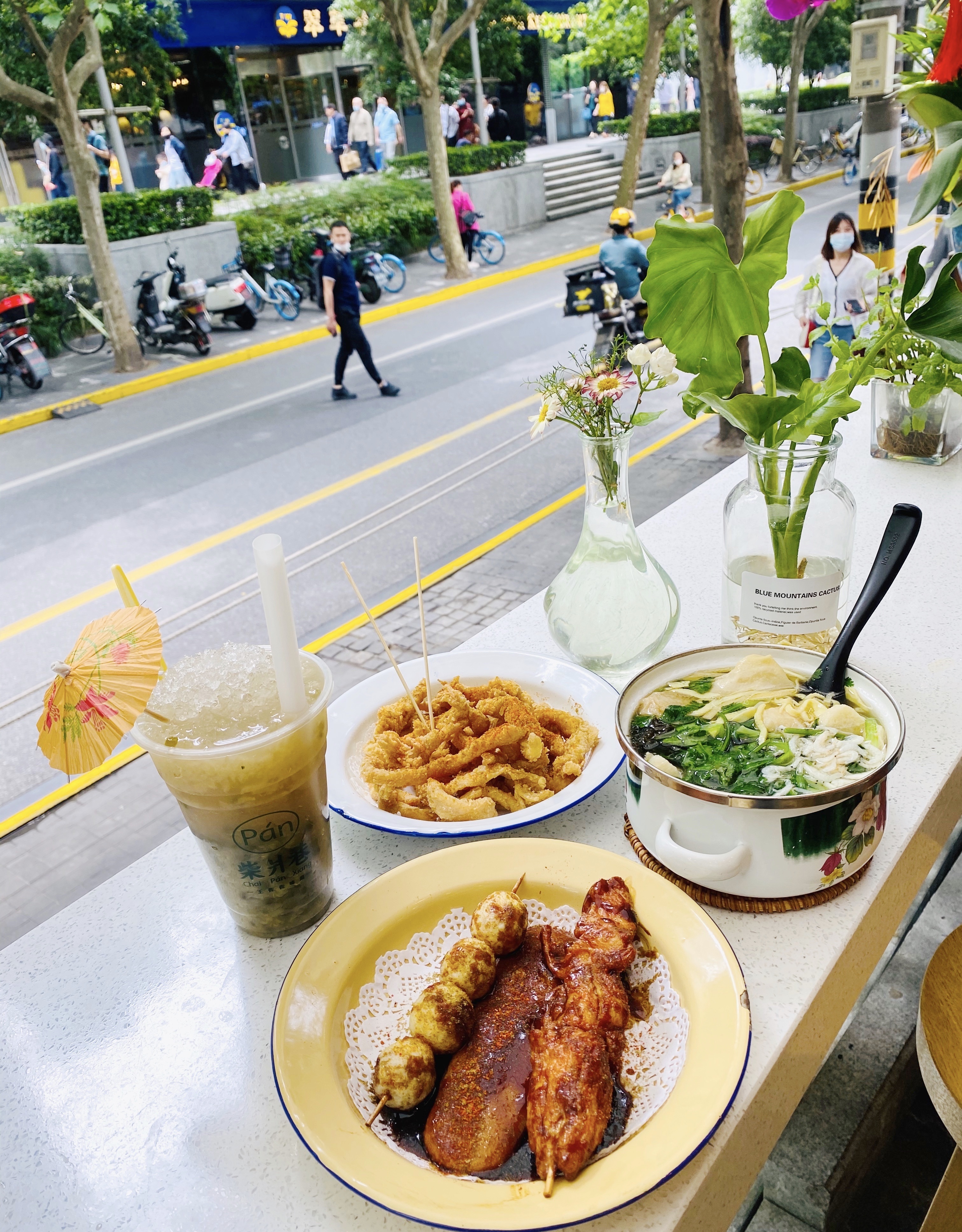 光看菜单,柴爿小馄饨、里脊肉串、油炸年糕、红炸猪排、香酥鸡、春卷、绿豆冰…这些上海人小时候的美味一应俱全。价格也比较实在,馄饨20元左右,朋友聚会再加点串串,人均40妥妥吃饱。
