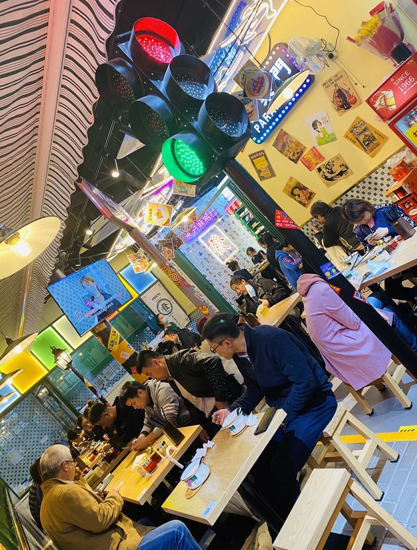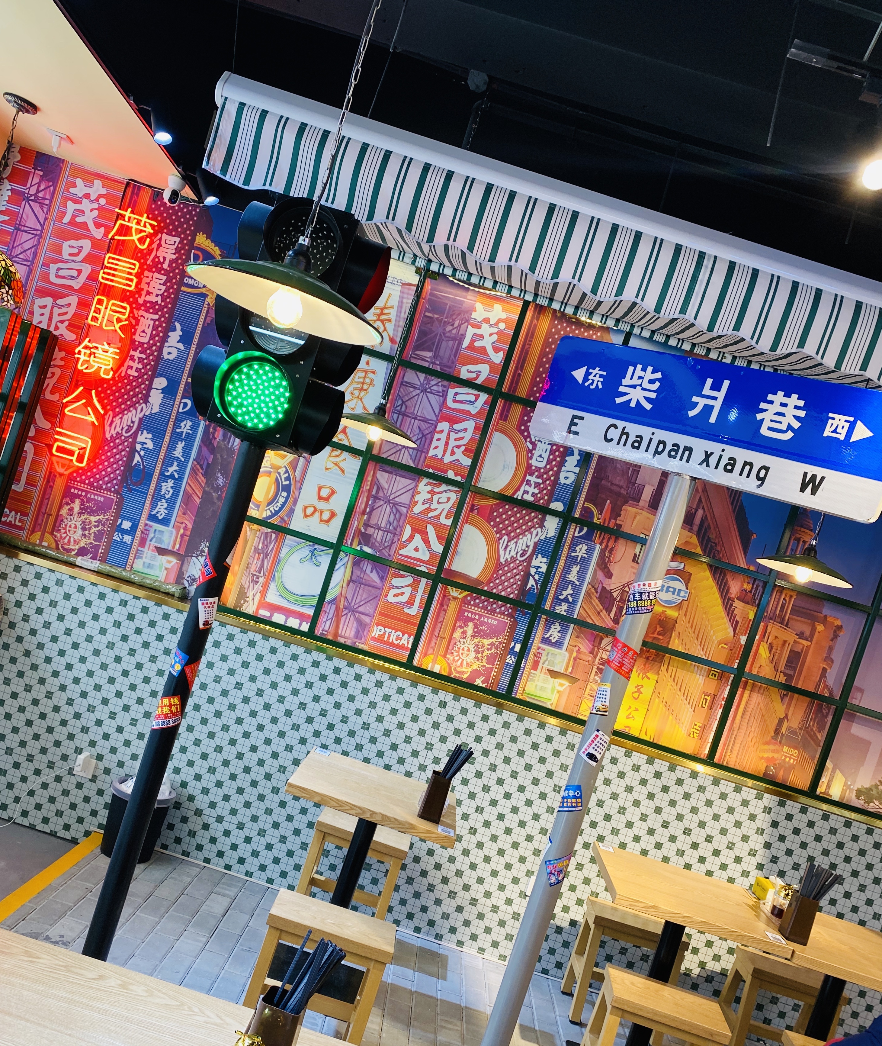 除了味道,店铺的颜值也很高,cici将南京路街景霓虹、百乐门老上海经典地标、装满小零食的胭脂店、红绿灯、电线杆等元素融入店里,让这里成为一个网红打卡点,不仅好吃,更好看。“现在的年轻人喜欢拍照,所以无论是美食还是店铺,我都要给他们想来的理由。”