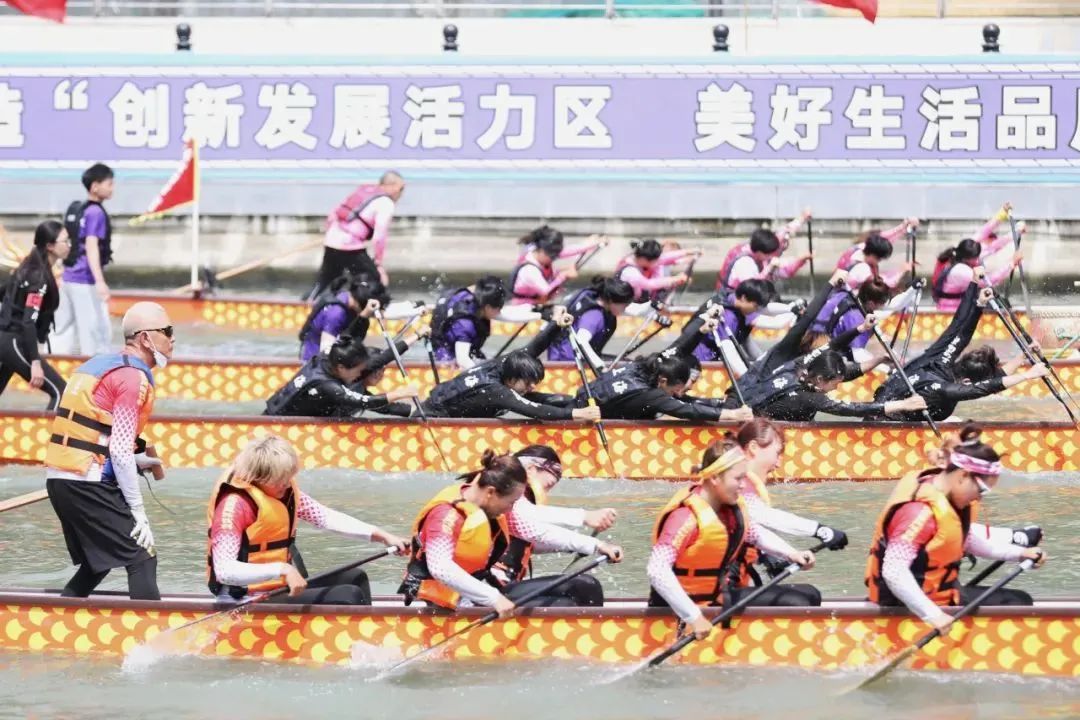 为市民送上端午划龙舟的精彩对决和热闹景象