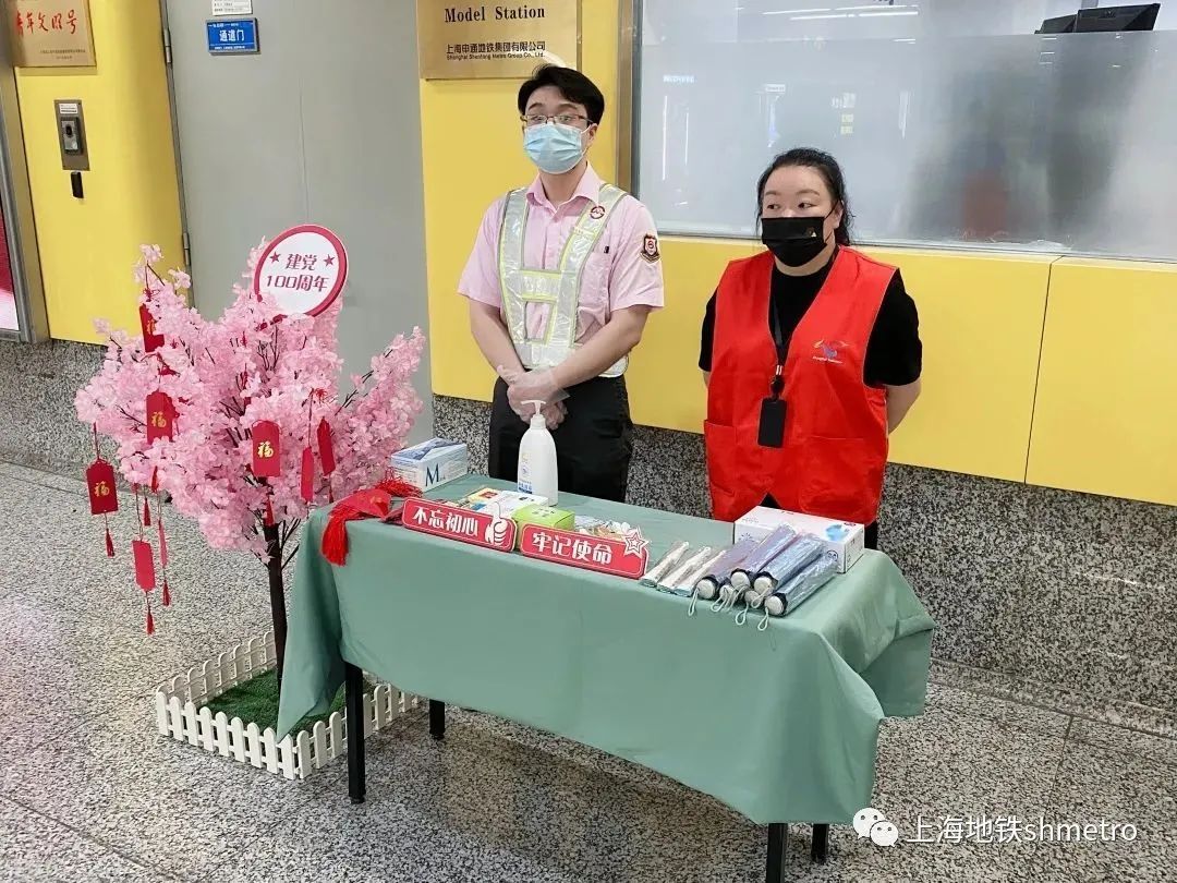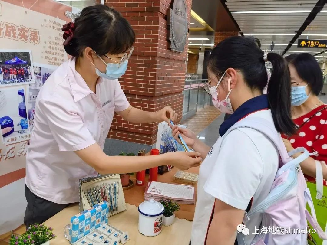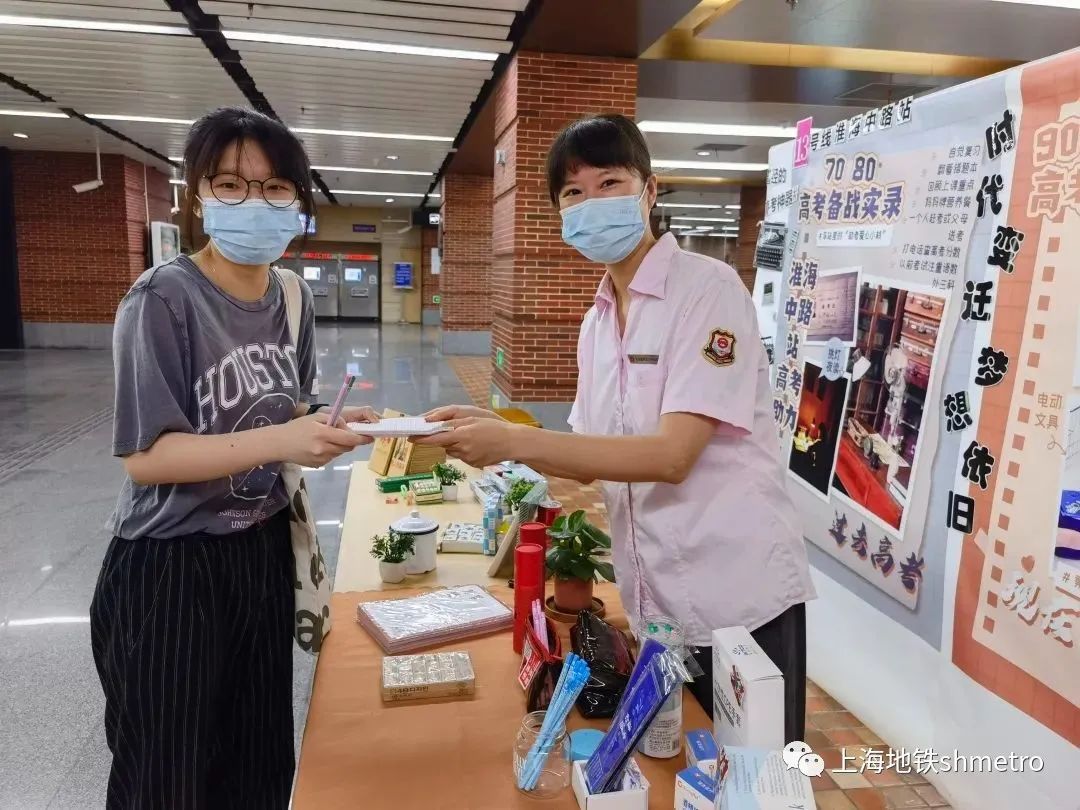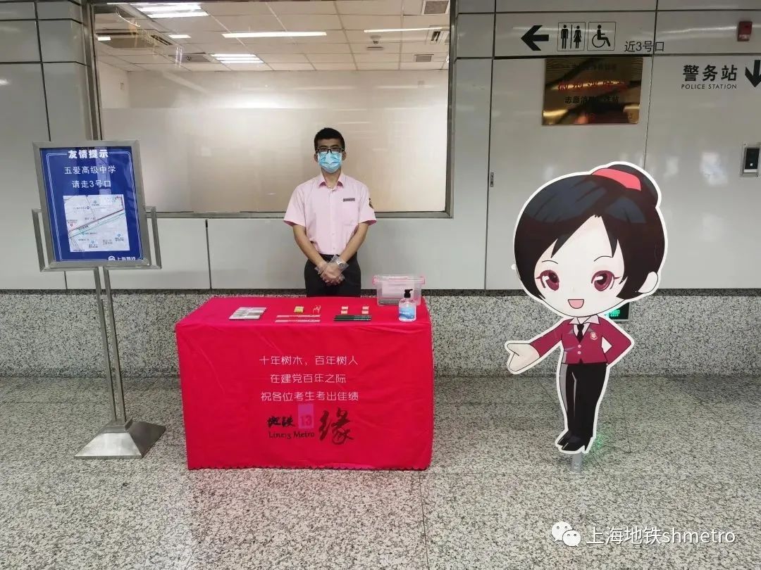 13号线世博会博物馆站临近五爱中学,五爱中学是每年的高考考点,在这个特殊的日子里世博会博物馆站特地为高考的学子们准备了爱心助考台,给考生们配备了文具用品,以备不时之需,还定制了台布,助考生们能在建党100周年的好日子里金榜题名,考出佳绩。