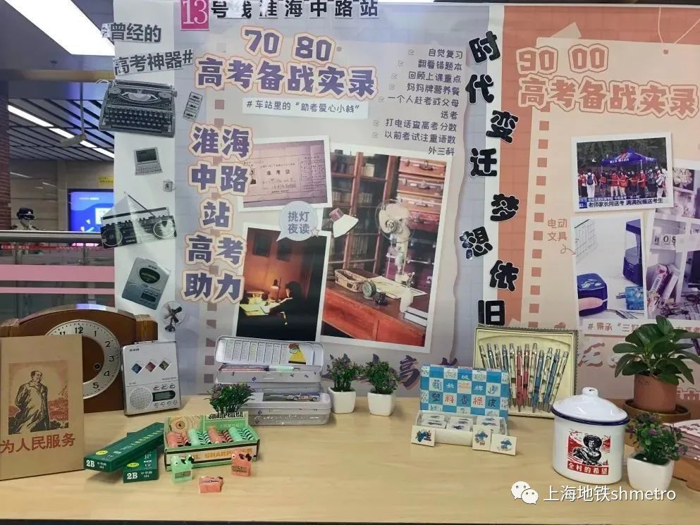 说起上海地铁中最有上海特色的地铁站,必然是淮海中路站,红砖铜牌,老上海风韵与现代车站融合的恰到好处。时值一年一度高考之际,淮海中路站结合自身车站特色将其与高考相结合,推出了车站里的“助考爱心屋”;将70、80年代高考备战与90、00高考备战相对比,寓意时代变迁梦想依旧的主题,通过氛围营造鼓舞学生、“助考爱心小栈”内物资准备助力高考。
