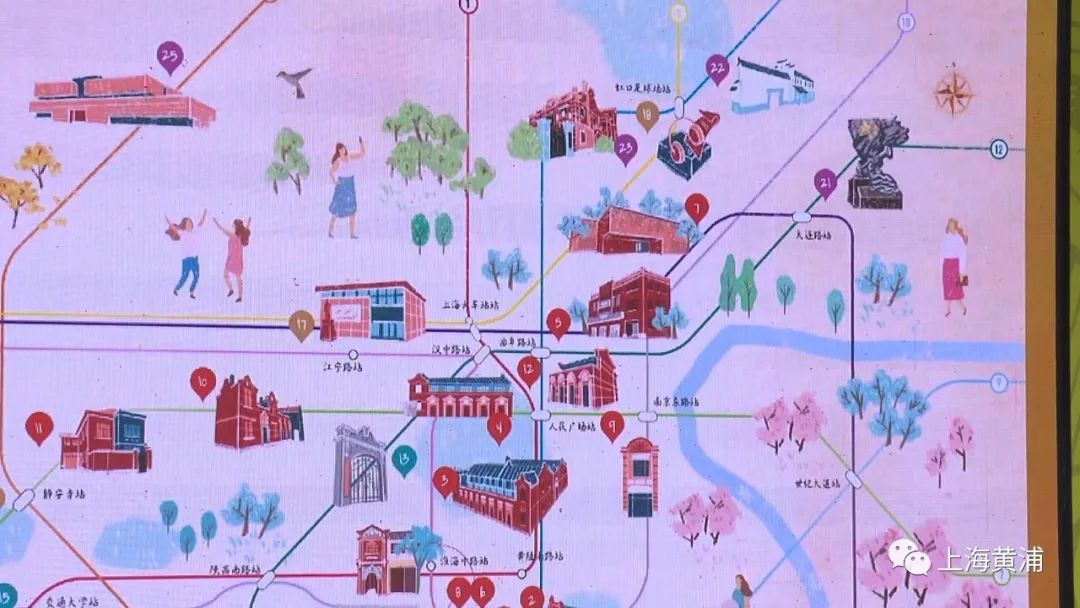 上海地铁特别制作了一张红色文化地铁地图,串联起“三馆五址”、毛泽东旧居陈列馆、李白烈士故居、国歌展示馆等上海的25个红色地标。手绘风格的场馆趣味盎然,场馆周边标示的地铁站也方便市民按图索骥。目前,这张地图已经在各大地铁站向市民免费发放。