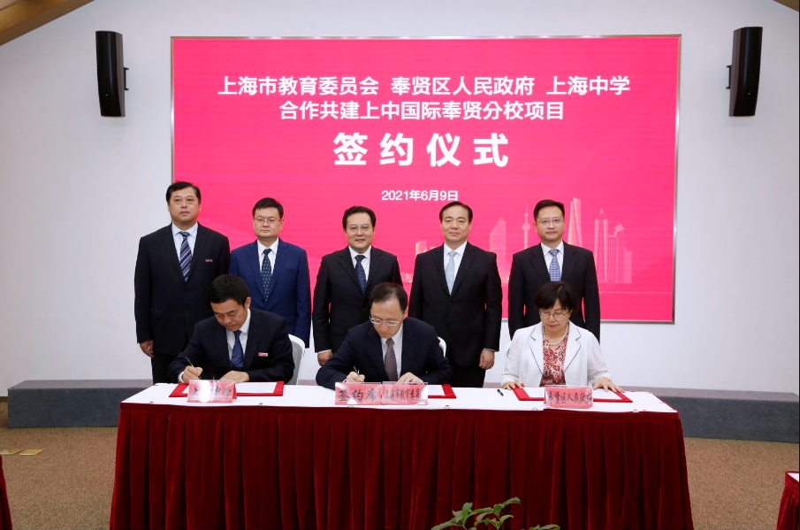 继成功引进上海世界外国语学校等院校后,奉贤再迎一所国际化学校。6月9日下午,上海市教委、奉贤区人民政府、上海中学三方签订合作协议,共建上中国际奉贤分校。随着“上中”这一名校的落子定局,标志着奉贤全面建设南上海品质教育区迈出了新的历史性步伐,为打造“独立、无边界、遇见未见”的奉贤新城奠定了良好扎实的教育基础,也为上海加快建设“五个中心”和具有世界影响力的社会主义现代化国际大都市作出有益探索。