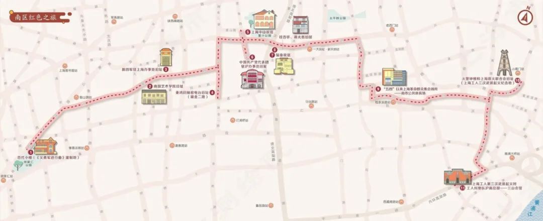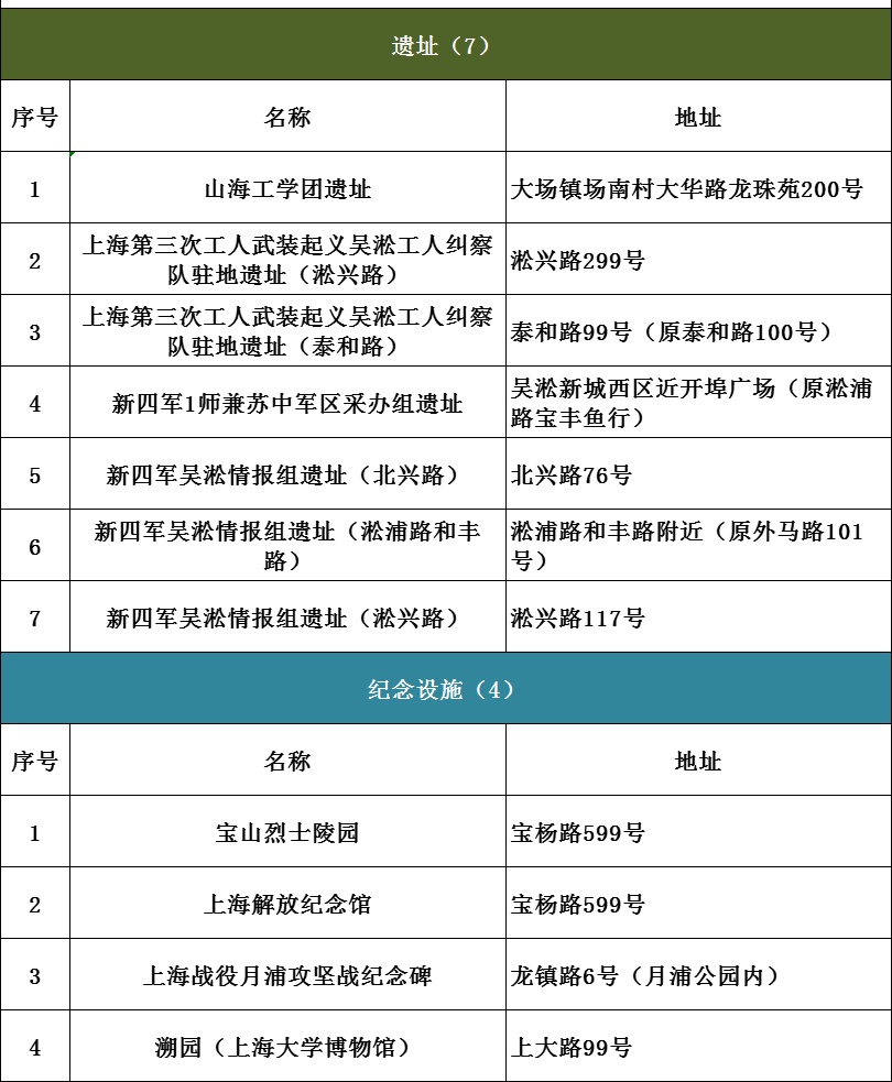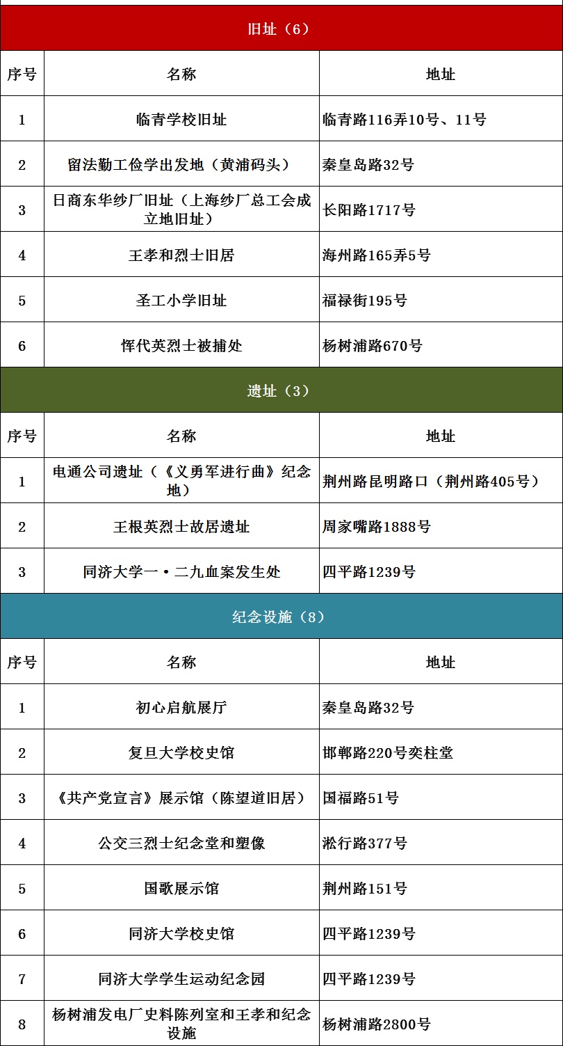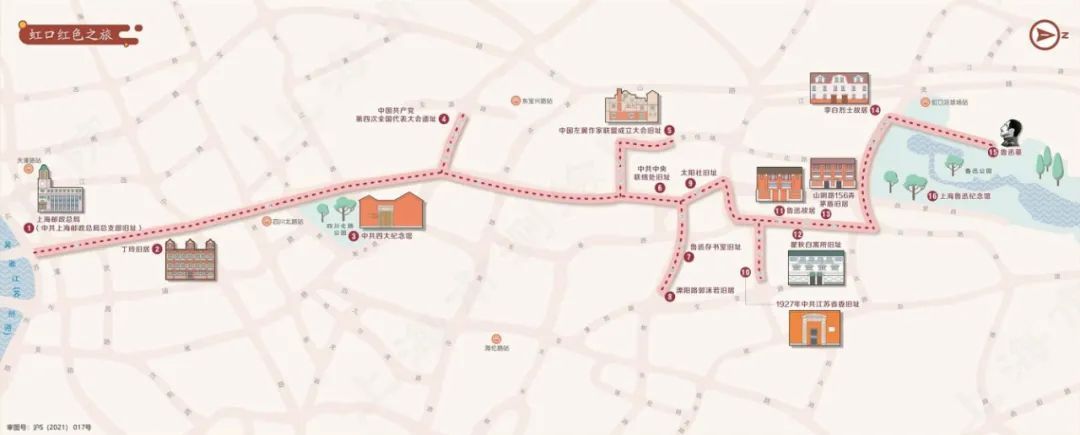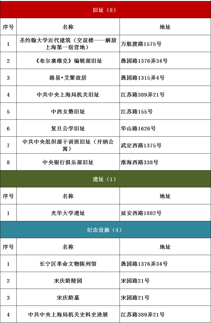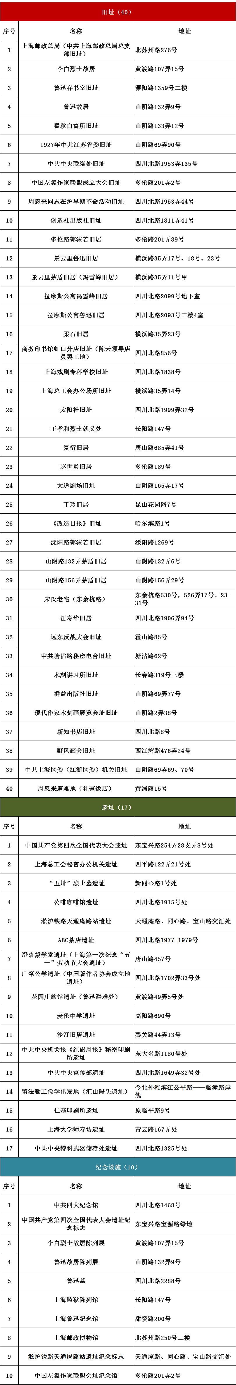 在“文化和自然遗产日”到来之际,市文旅局发布了《上海红色文化地图(2021版)》,其中包括:革命旧址195处,革命遗址83处,纪念设施101处。地图主图正面标注379处点位,背面印制100个重要点位的图片,附图正面设计了6条红色资源寻访路线。详见↓