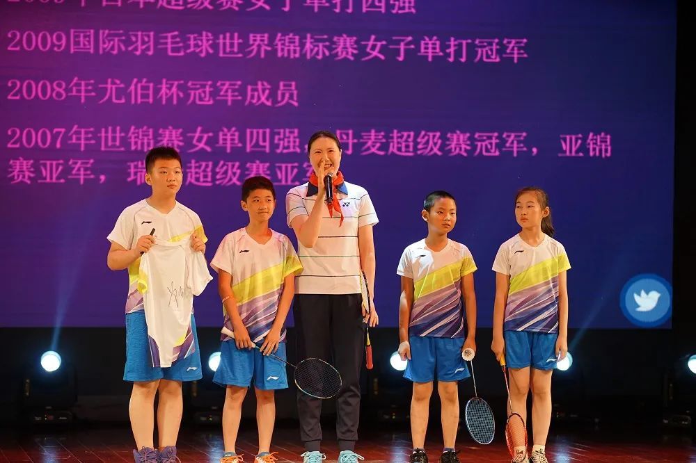 最让我们激动的是学校安排了“体育明星面对面”的活动,学校邀请了著名足球运动员 孙吉和世界羽毛球冠军 卢兰。