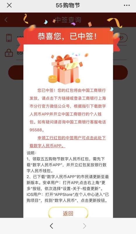 用户收到中签短信后,可按照中签短信指引下载数字人民币APP,开立个人数字钱包;也可在中签查询结果页面点击“下载数字人民币APP”按钮。