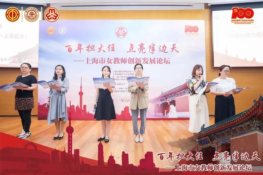 论坛上,上海市女教授联谊会、上海市优秀青年女教师联谊会会员们还积极响应全国妇联、科技部等七部门联合发布的《关于实施科技创新巾帼行动的意见》精神,共同宣读了《科技创新 巾帼行动 上海宣言》。