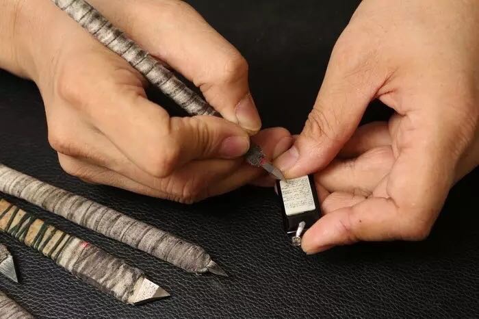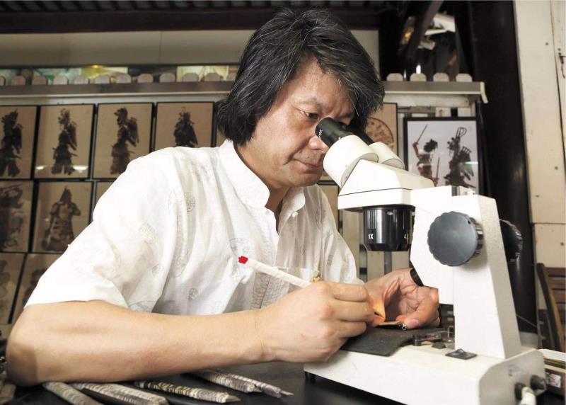 细刻作画技艺,一般用以超高硬钢磨制而成的铁笔,来刻写山水、花鸟、人物于玉石,骨牙,竹牌材质表面,具有观赏性和实用性。