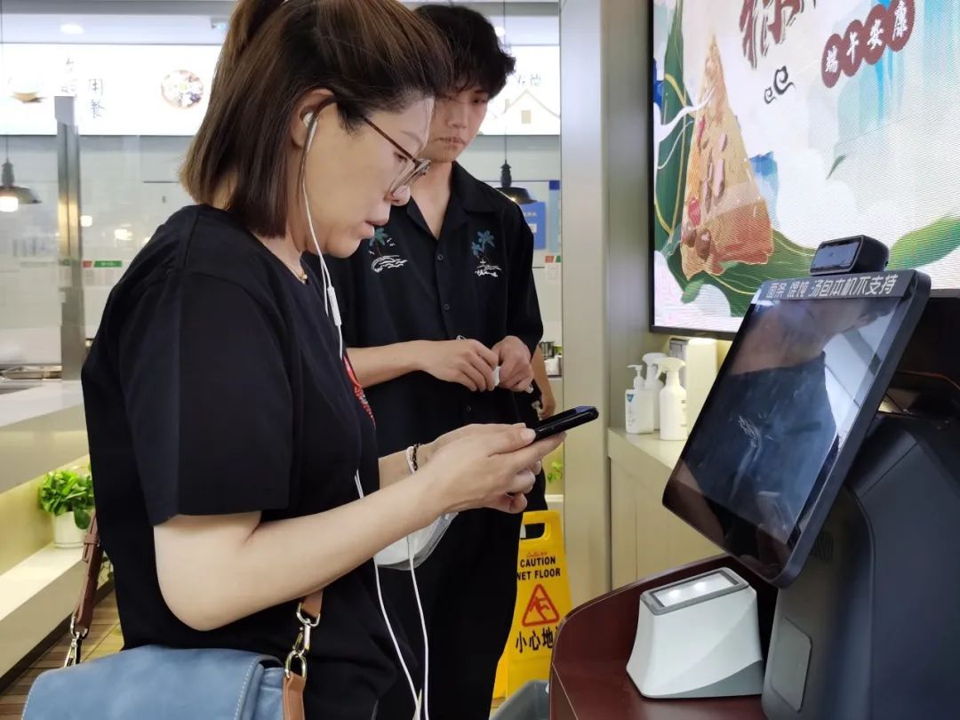 除此之外,该智能结算平台还有一项功能值得一提,就是“刷脸”支付功能。“只要居民有意愿,我们的工作人员就可以现场帮他们录入身份信息,之后再来用餐就能‘刷脸’支付了。”孔然介绍说,“刷脸”用餐的前提是,需要居民将面部及相关信息录入系统,再次来餐厅用餐时就可以享受到即时结算、热量识别、刷脸支付等“一站式”智能餐饮服务了。