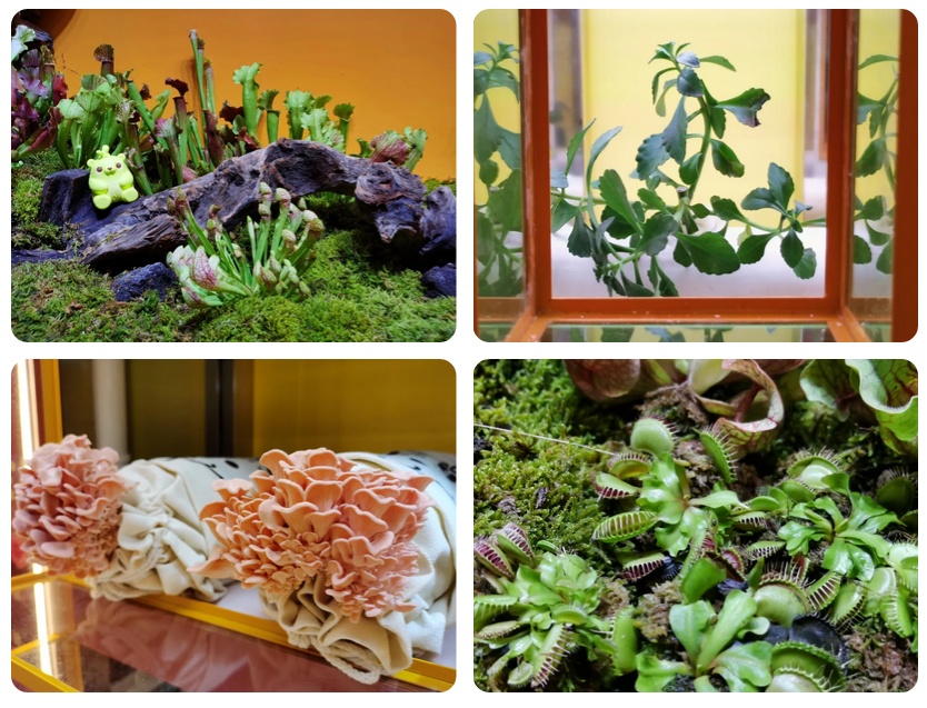 此次展览的最大亮点当属“植物科普专列”区域,观展者可与萌芽熊共同搭乘“萌芽号”专列。专列车厢里陈列着我们平日熟悉的豆角、黄瓜等茄果类植物和捕蝇草、猪笼草等充满奇妙反应的食虫草类植物。