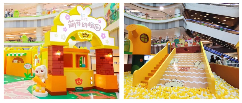 现场共设七大点位,分别为“萌芽趴一趴”、“植物科普专列”、“萌芽小剧场”、“萌芽游乐园”、“萌芽扭蛋机”、“萌芽熊花房故事”以及“萌芽旋转蹦床”。