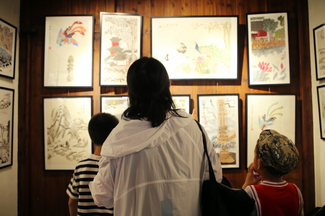 正巧,“云间童画·地平线——学生画展”正在艺云阁举办,展出的近150张风格、主题各异的水墨、水粉作品,均是由松江地区学生利用课余时间完成。