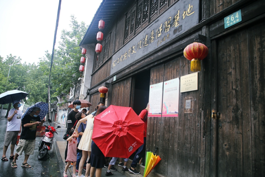 传习基地里的松江非遗展示,顾绣、皮影戏、昆曲、余天成堂传统中药文化、江南丝竹、叶榭软糕等,也让大家大开眼界。
