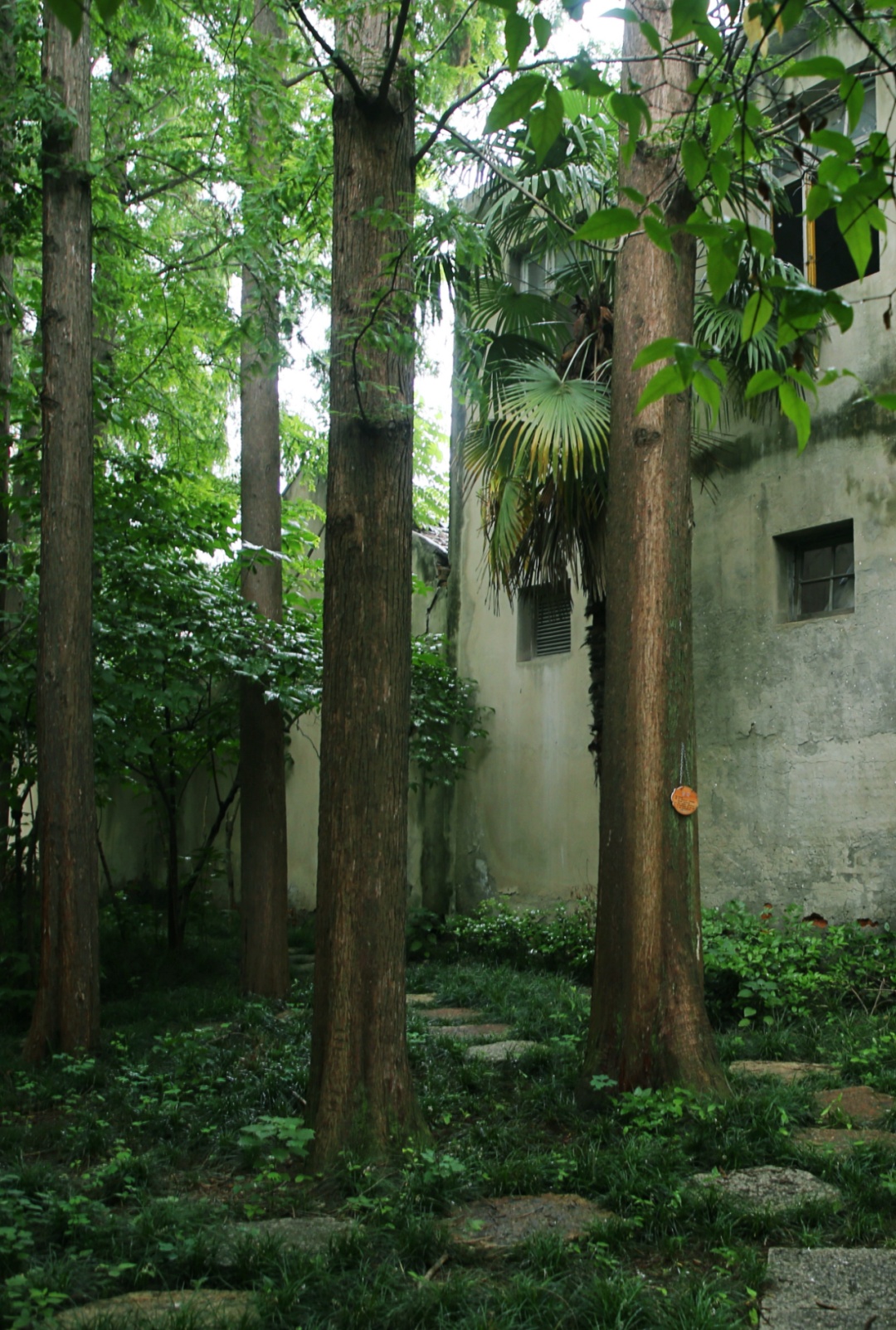 在艺云阁的后院,还有一处曲径通幽的境地。1975年王子彝去世时,后人栽下的10多棵杉树,如今已然成林,另有90余年枣树一株,及数十年树龄的橘树、枇杷树、银杏树,还有一口清代石井尚留其间。