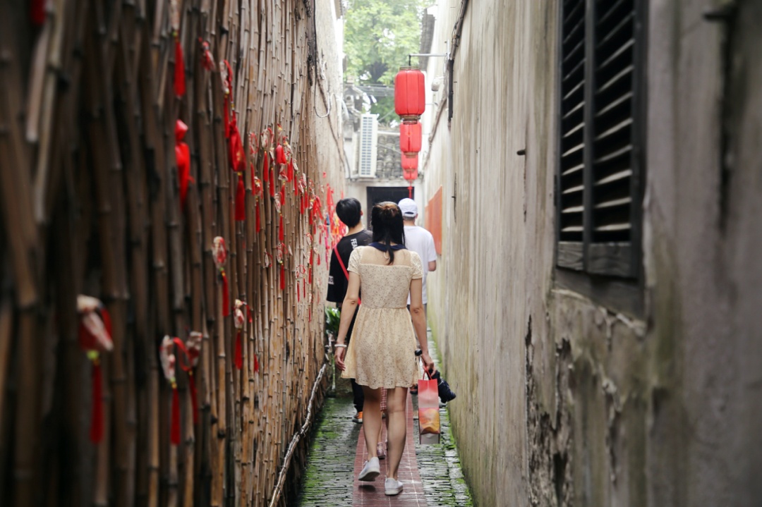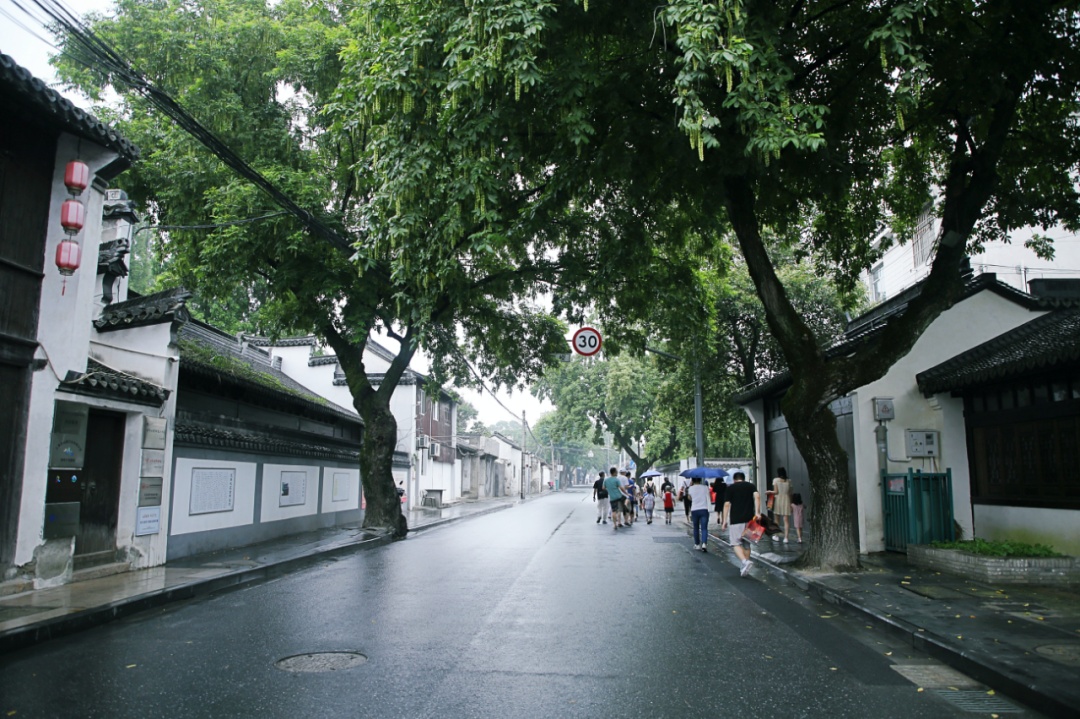 雕花楼还有一处网红打卡点——雨巷。戴望舒的《雨巷》便是在松江写成,“撑着油纸伞,独自彷徨在悠长、悠长又寂寥的雨巷,我希望逢着一个丁香一样的结着愁怨的姑娘……”